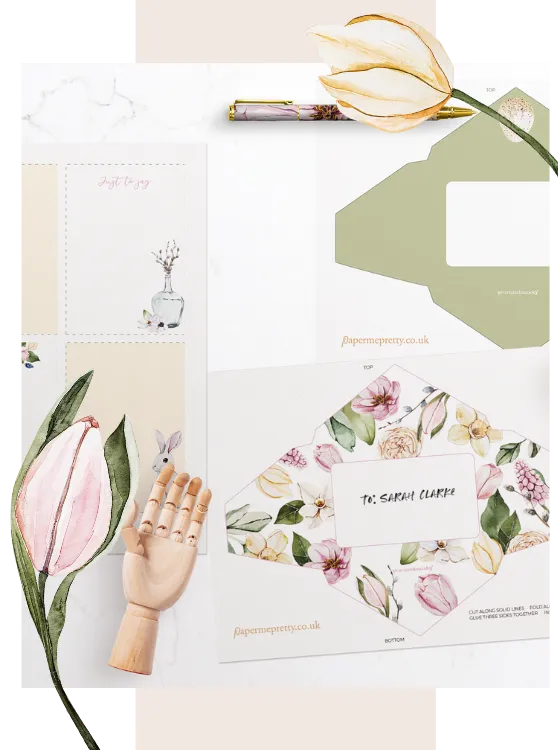 Every month, you’ll receive a beautiful bundle of digital stationery that you can print at home. Our monthly bundles include: